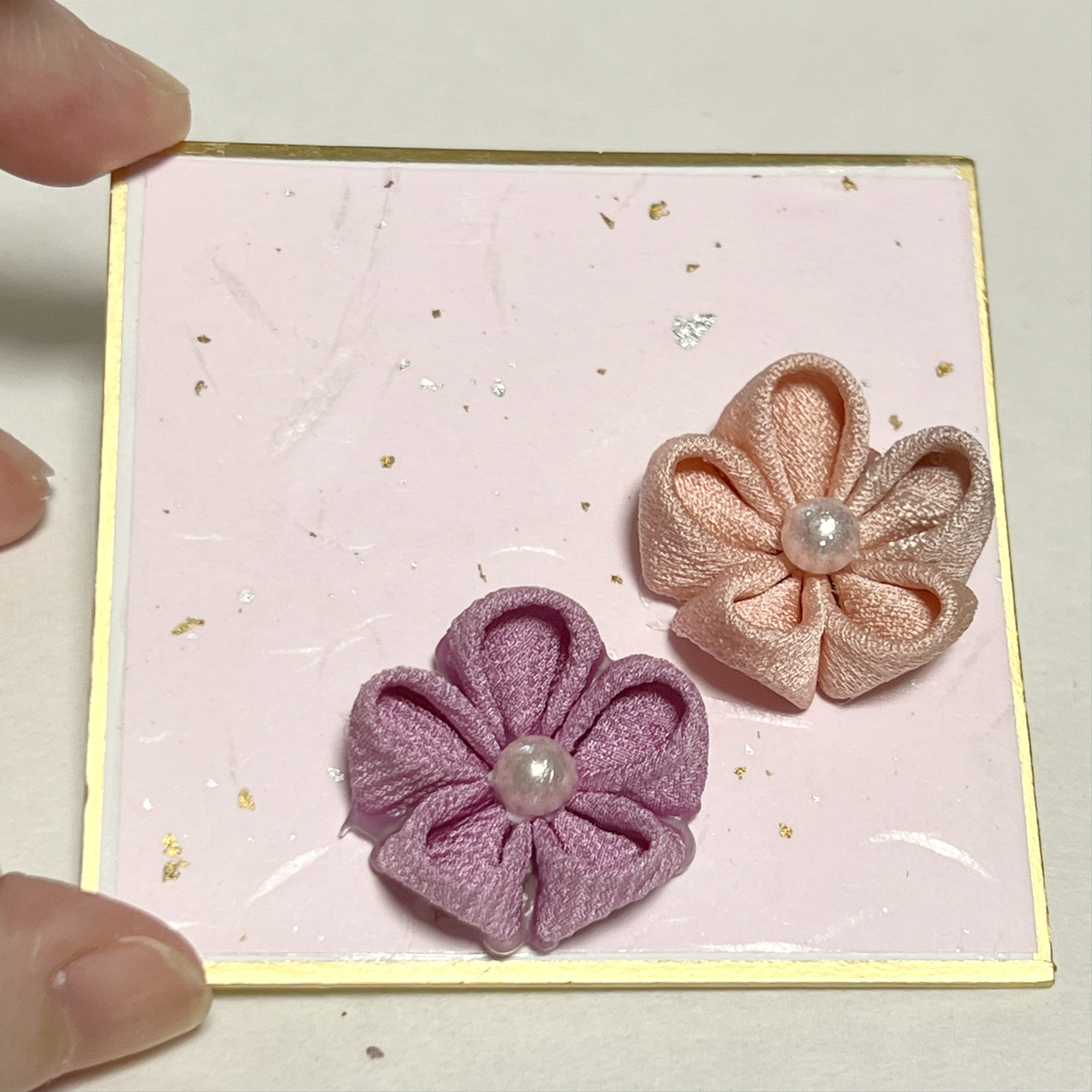 こちらは小学校低学年から作ることができる「梅」が入ったキットです。(通常のおうちつまみ細工キットの一重梅はストラップ、こちらのキットは姫色紙です)
