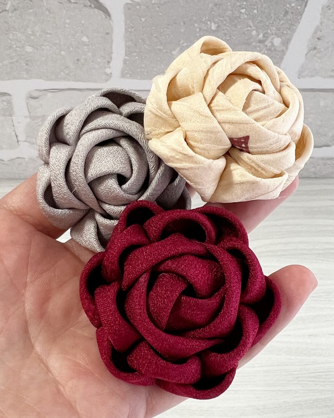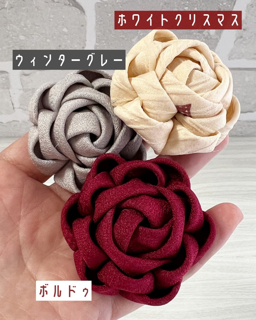 季節のアクセサリー「クリスマスブローチ」としてカメリア(椿)モチーフを作ります。