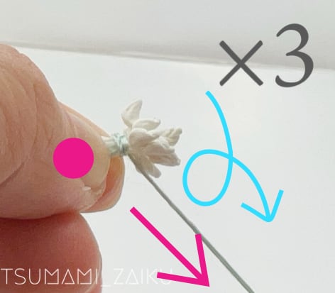 同「八重桜」桜つまみ、剣つまみ、八重桜の葺き方
