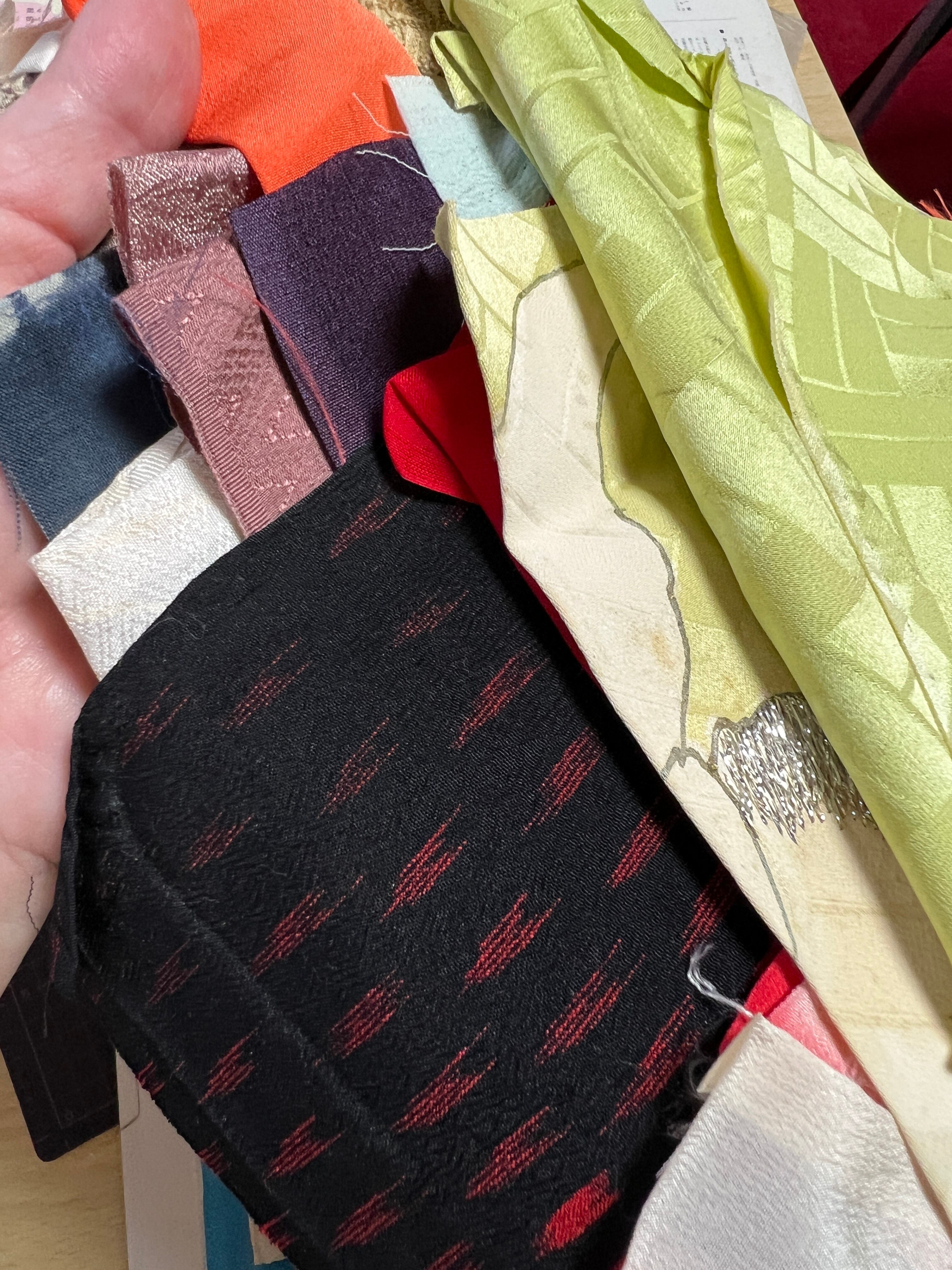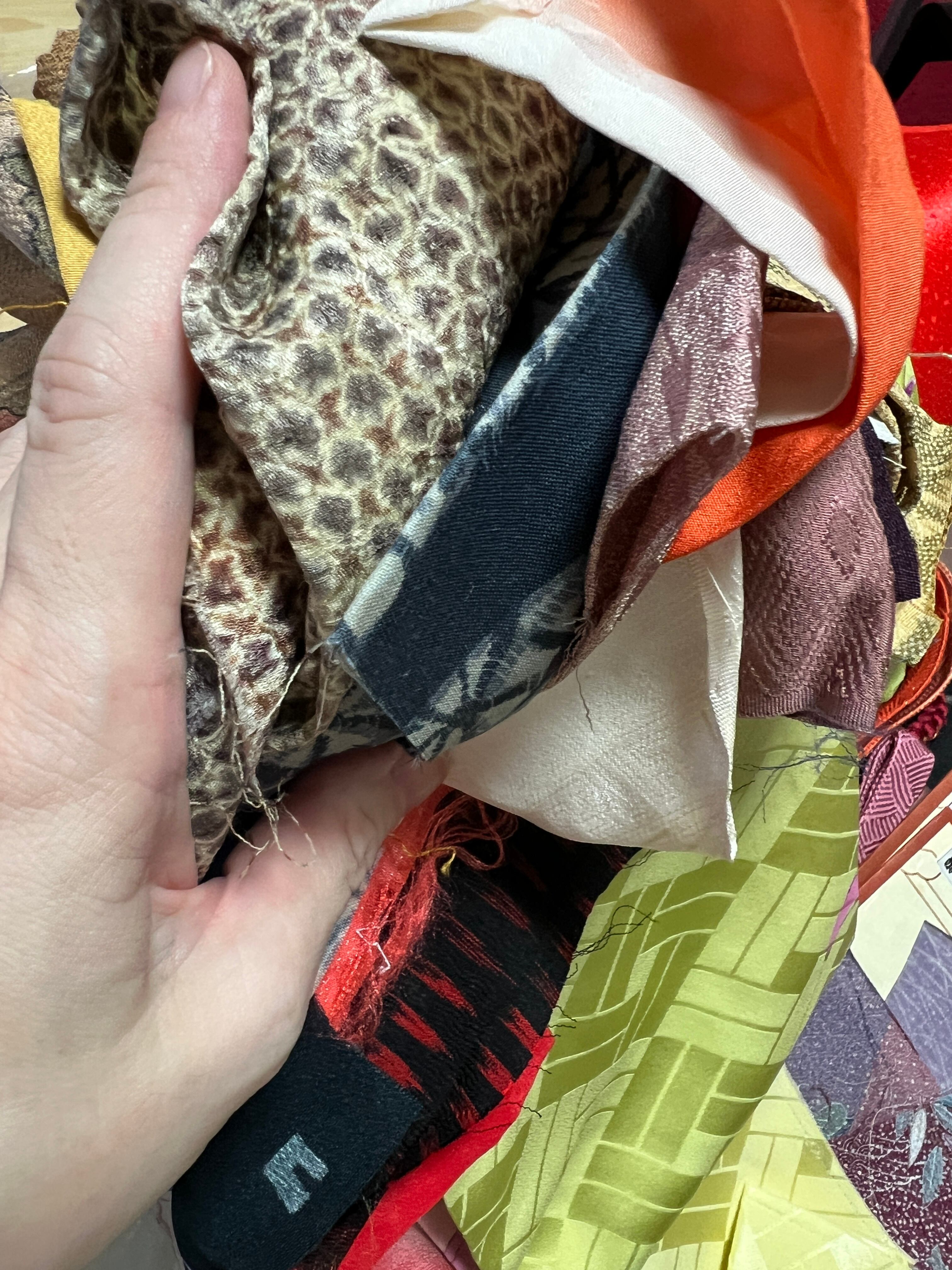 正絹生地メインですが、ウールやポリエステルも入ります。