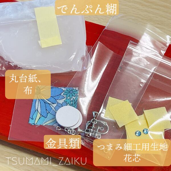 【おうちつまみ細工キット】第八回「江戸つまみ細工」雪花イヤリング、ピアス(糊付)